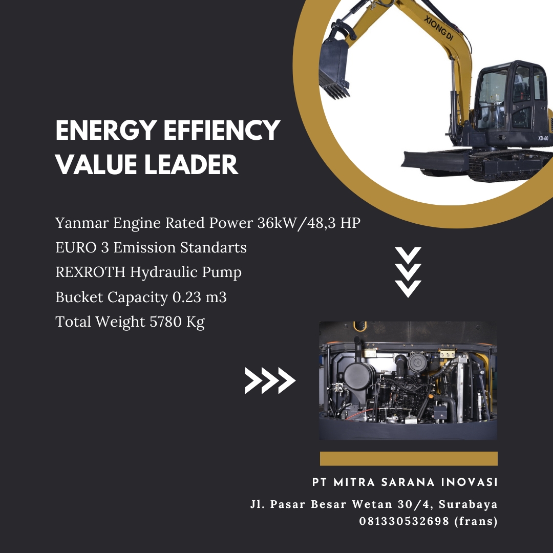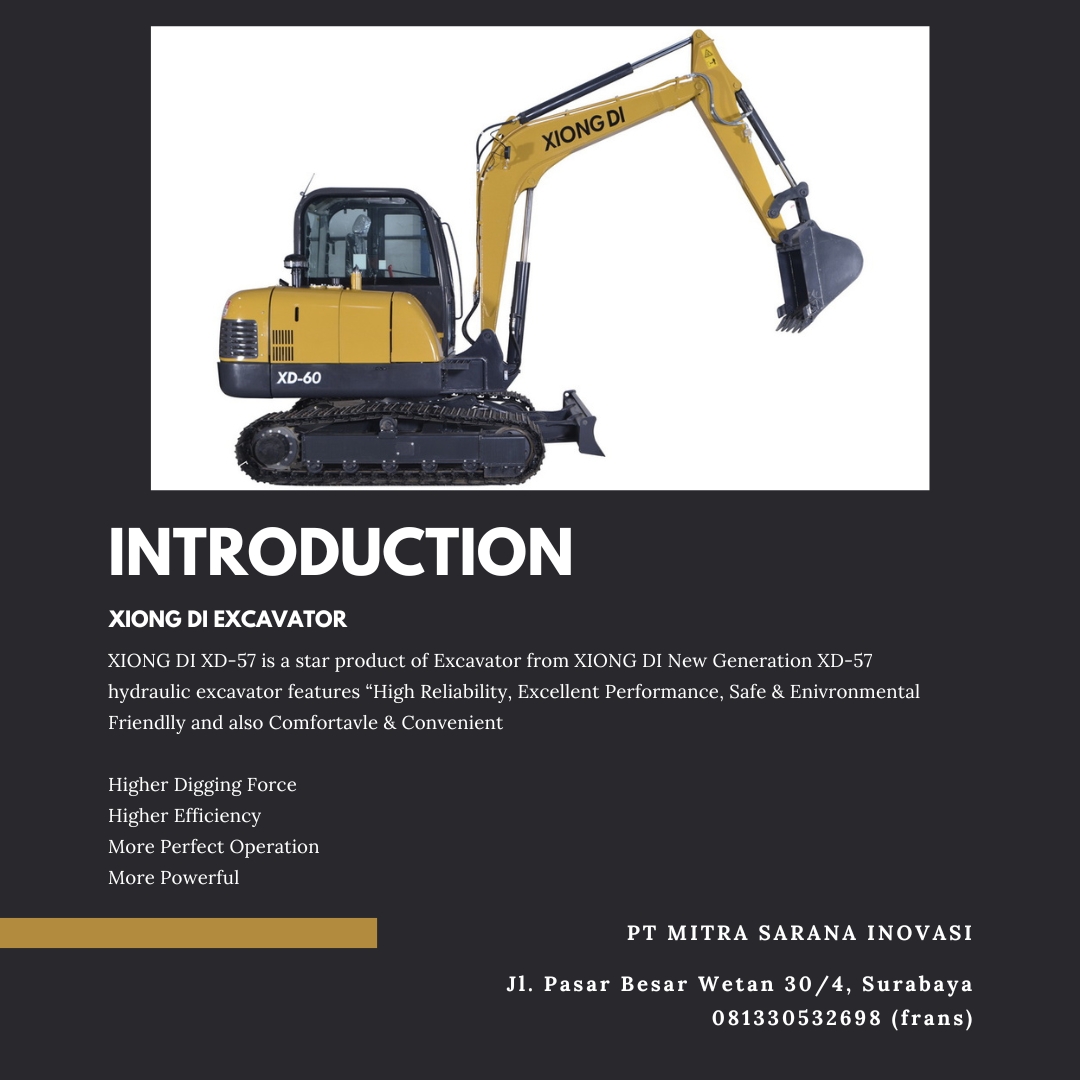 XIONG DI XD-60 adalah excavator terbaik kami. XD-60 memberikan performa terbaik di kelasnya, handal tak tertandingi, aman bagi pengguna dan lingkungan, dan juga nyaman dan mudah dioperasikan.